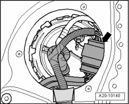- Remove electrical wires with connector - arrow - from locking flange opening and lay them aside.