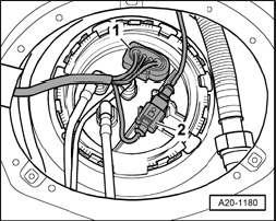 - Disconnect electrical harness connector -1- at connector flange.