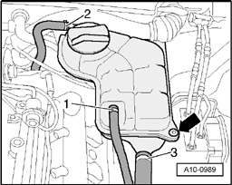 - Lay aside coolant reservoir with connected coolant hoses -1- to -3-.
