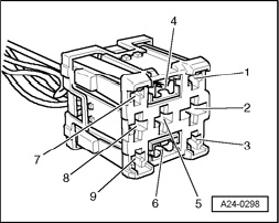 - Connect VAG1527B voltage tester between terminals 1 and 2
