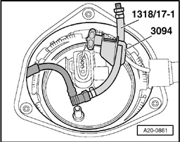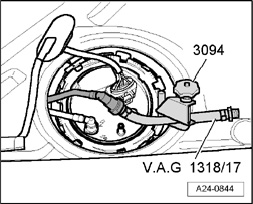 - Connect V.A.G 1318/17-1 adapter piece to return line.