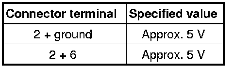 • The voltage picked off by the angle sensor 2 runs from 5 V in the direction of 0 V. (As the throttle is opened, the voltage becomes smaller and the percentage decreases).