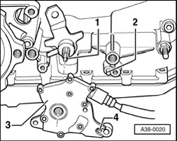 - Rotate switch until the alignment bore -4- at switch housing can be fitted on the alignment pin -2- at transmission housing.
