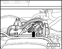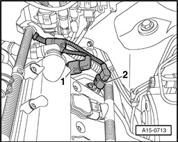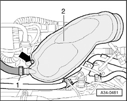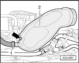- Disconnect intake air hose -1- at Mass Air Flow (MAF) sensor -G70-.