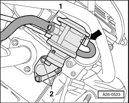 - Remove bolts -2- and disconnect vacuum hose (arrow).