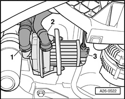 - Set coolant expansion tank with connected coolant hoses -1- and -3- aside.