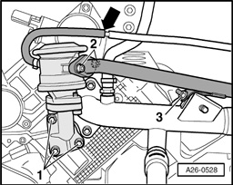 - Disconnect hose -3- from crankcase ventilation at cylinder head cover.
