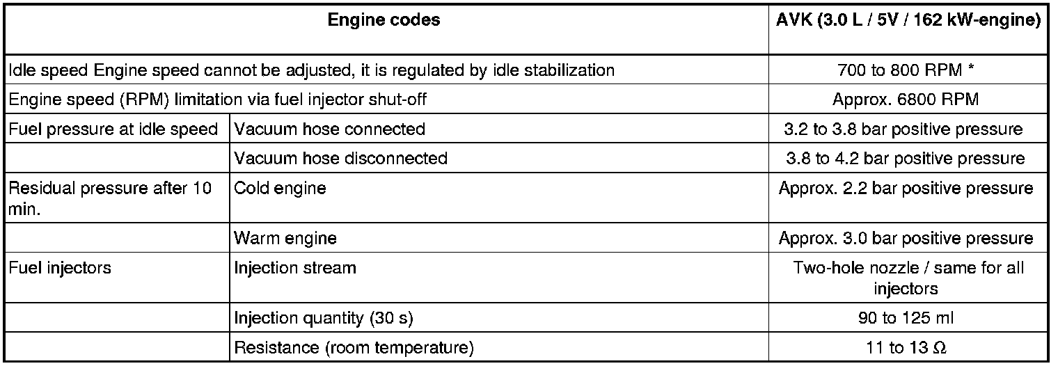Fuel Injection System Technical Data