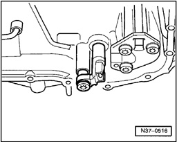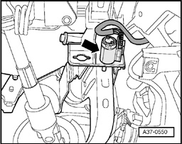 Component location: The sensor -A- is a Hall sensor and is attached behind the valve body to the transmission housing.