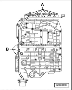 Solenoid Valves -N88-, -N89-, -N90- and Pressure Control Valves 1 -N215-, 2 -N216-, 3 -N217- and 4 -N218- are attached to the valve body.