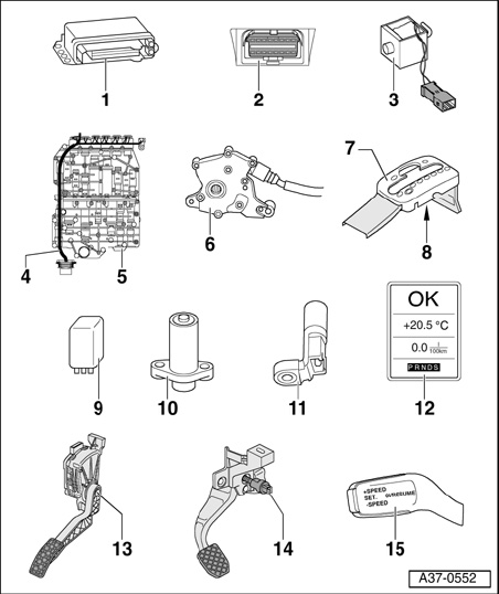 ^ No mechanical switch; a specific value from the Throttle Position Sensor and the Sender for accelerator pedal position -G79-/-G185- is stored in the Engine Control Module (ECM)