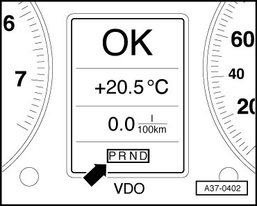 3 A flashing transmission range indicator in the instrument cluster points to a serious malfunction in the transmission - arrow -. The condition is critical to safety or for the transmission.