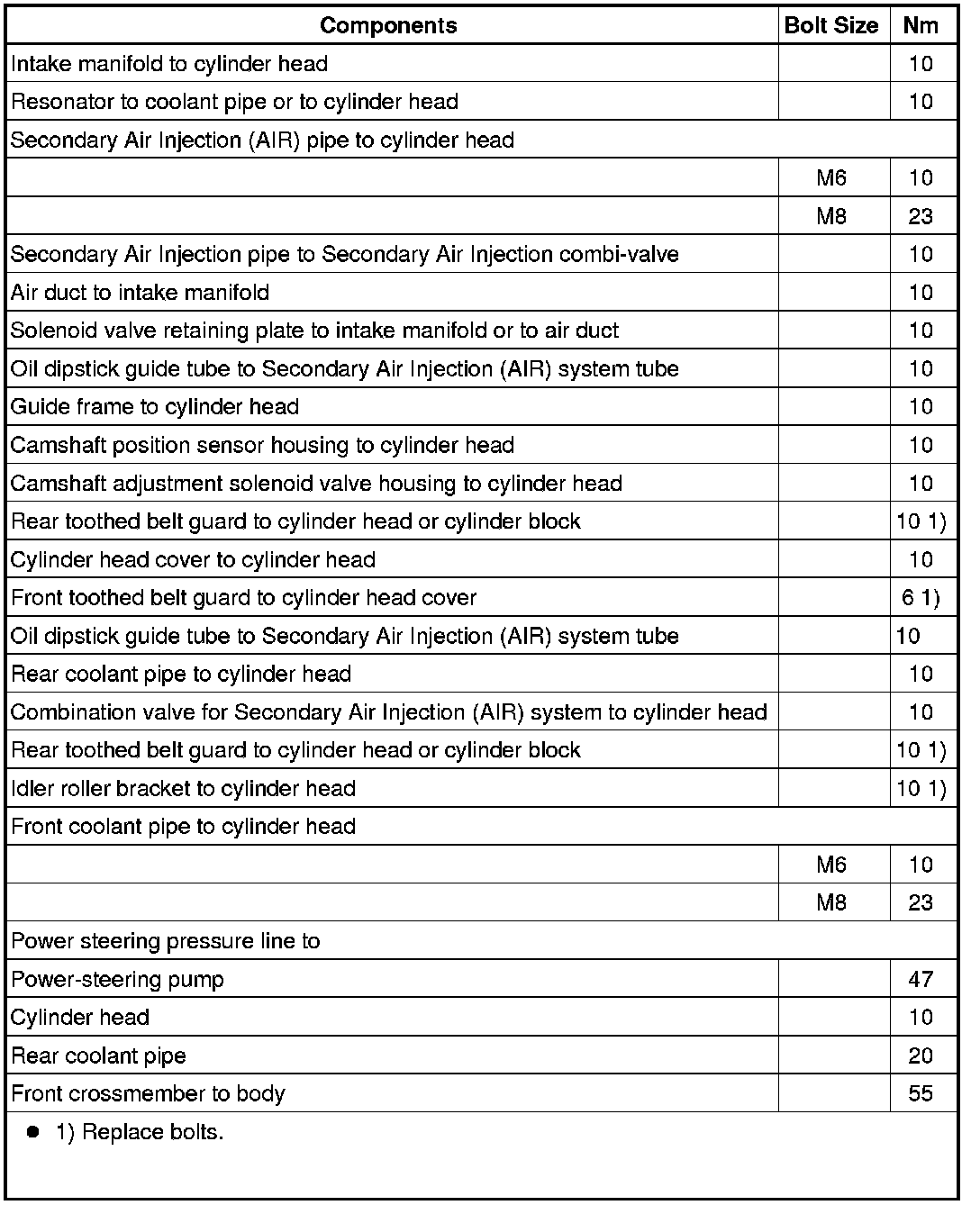 Cylinder Head, Valvetrain - Fastener Tightening Specifications