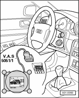 - With ignition switched off, connect Vehicle Diagnosis, Testing and Information System VAS 5051 to Data Link Connector (DLC).