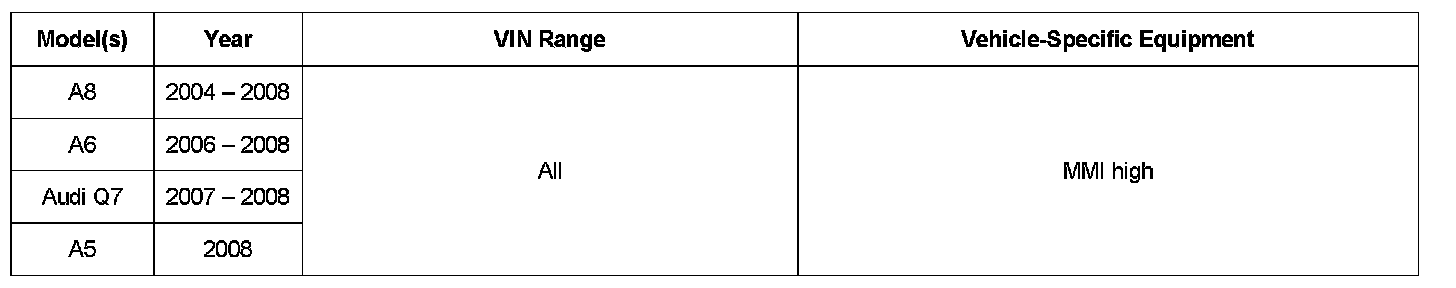 ^ TSB 2017424, 91 MMI High: Some functions unavailable after 07 - Display/control unit replacement or MMI Zug software update.
