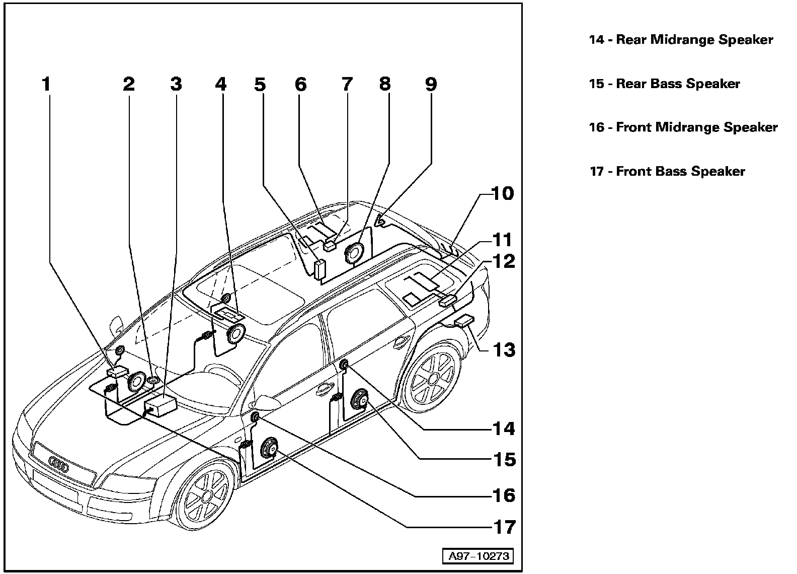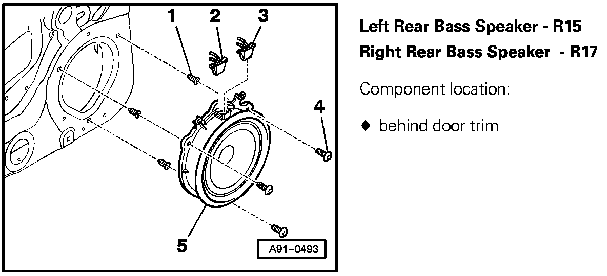 Left Rear Bass Speaker - R15, Right Rear Bass Speaker - R17: