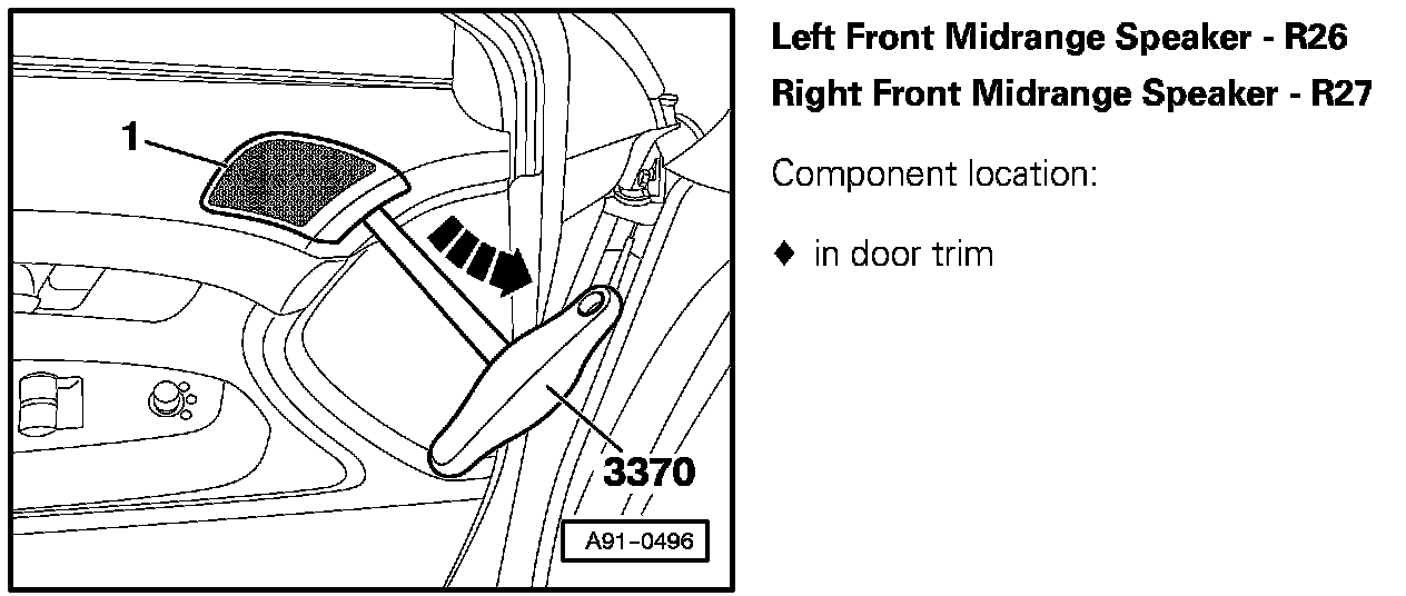 Left Front Midrange Speaker - R26, Right Front Midrange Speaker - R27: