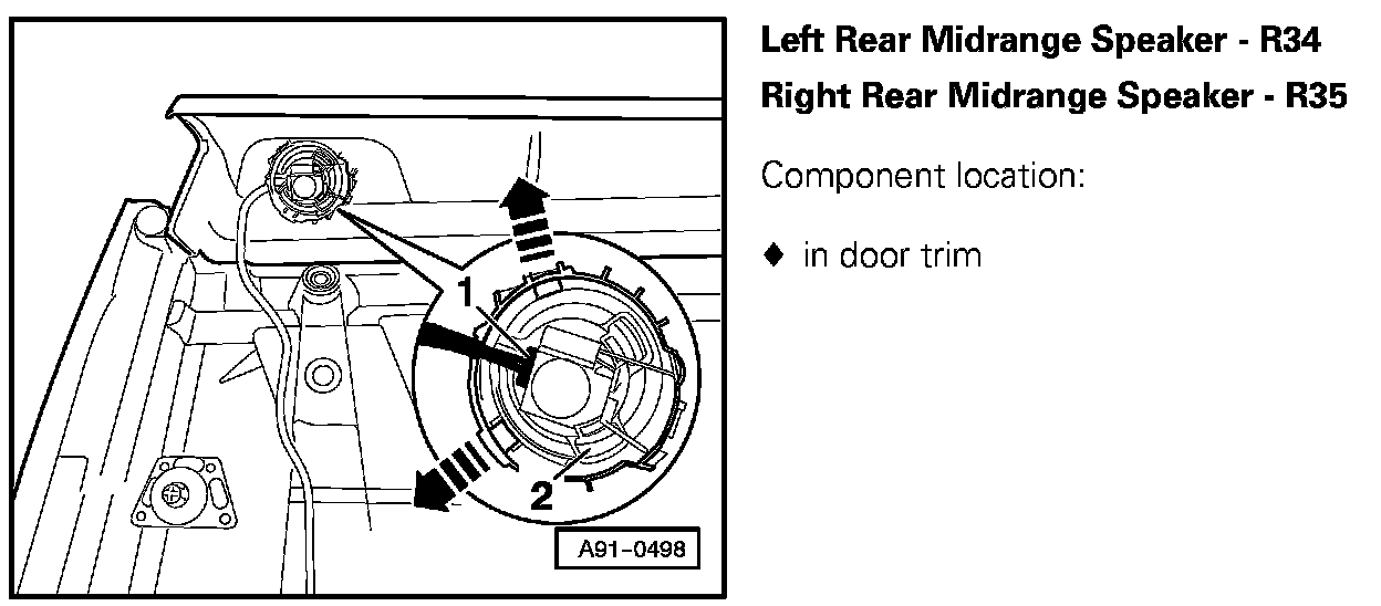 Left Rear Midrange Speaker - R34, Right Rear Midrange Speaker - R35: