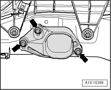 - For vehicles with auxiliary heater, remove bolts - arrows - for exhaust pipe of parking heater/auxiliary heater on noise insulation.
