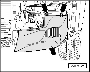 - Loosen quick-release fasteners - 1 - and - 2 - and remove front noise insulation.