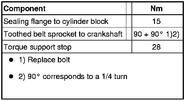 • Do not oil bolt for crankshaft toothed belt sprocket.