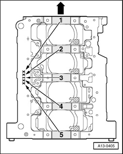 The cylinder block is allocated with bearing shells of the correct thickness in the factory. Colored spots serve to identify the bearing thicknesses.