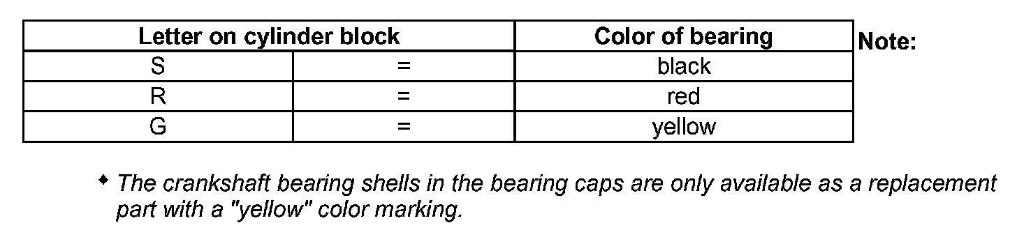 ^ The crankshaft bearing shells in bearing caps are only available as a replacement part with a "yellow" color marking.