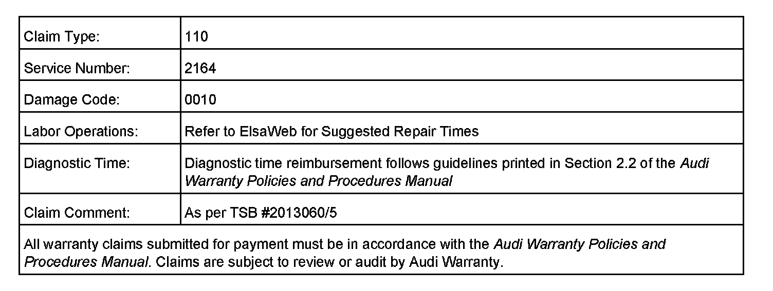 When procedure applies to vehicles under warranty, use the table.