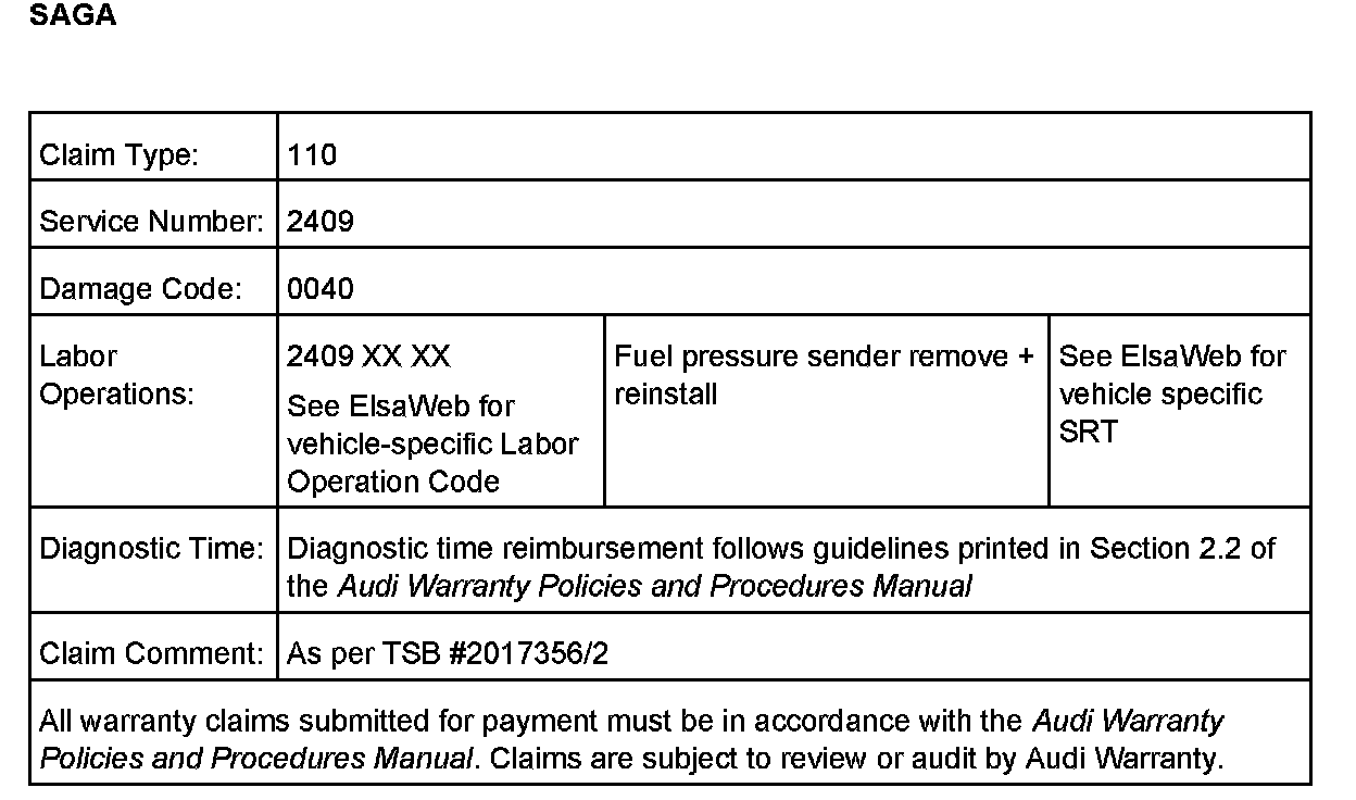 Due to fuel intrusion into the low-pressure system fuel pressure sensor (G410), a false signal may be sent to the controller resulting in a reading that is out of tolerance.