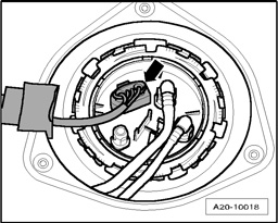 - Using multimeter V.A.G 1526 B or equivalent, check the electrical connections between the flange and the fuel pump.