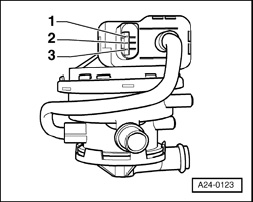 - Using the Multimeter V.A.G. 1526 A or equivalent, check them Leak Detection Pump (LDP) V144 for resistance as follows: