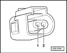- Using adapter cables from connector test kit V.A.G 1594 C , connect electrical harness connector terminals 1 + 2 together and observe the indication on display.