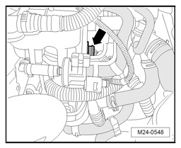 - Disconnect the electrical harness connector - arrow - from the Intake Flap Motor V157 / Intake Manifold Runner Position Sensor G336.