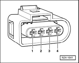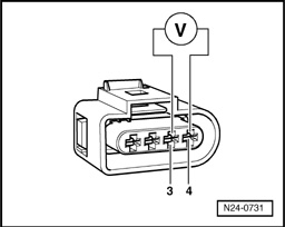- Using the Multimeter V.A.G 1526 A or equivalent, check the electrical harness connector terminals 3 to 4 for voltage.