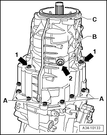 - Then tighten the 13 bolts - A - to 24 Nm.