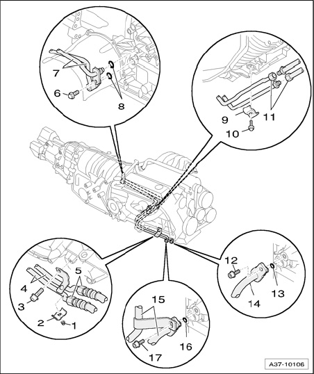 ATF cooling lines, component overview (vehicles with 2.0 ltr. TFSI engine) - 09L, 6 Speed AWD A/T