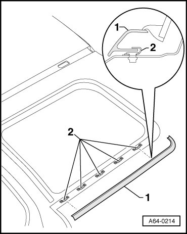 - Beginning at C-pillar, pull lower trim molding - 1 - from retaining springs - 2 -.
