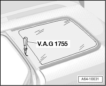- Pierce through adhesive sealing material using a guide needle with handle from (V.A.G 1755) window removing kit.