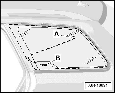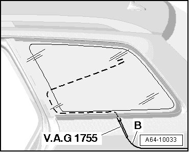 - Pull cutting cord end - A - inward (use pliers and protective gloves) to opposite window side with guide needle from ( V.A.G 1755) window removing kit.