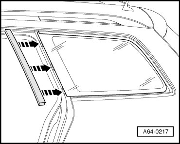 - Apply double sided adhesive tape D 004 400 on window gasket, rear => [ (Item 4) Double sided adhesive ] Side Window Assembly Overview, Avant.