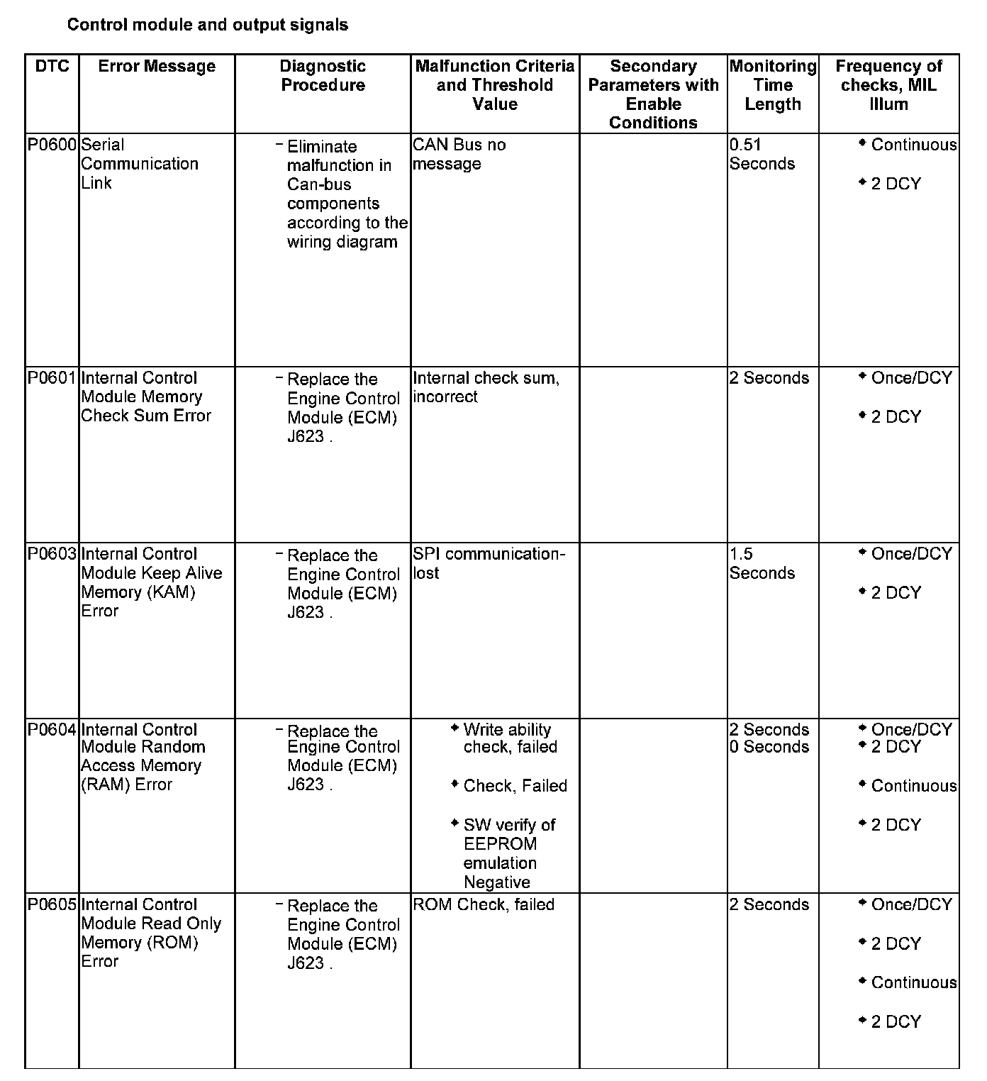 P0600 - P0605: