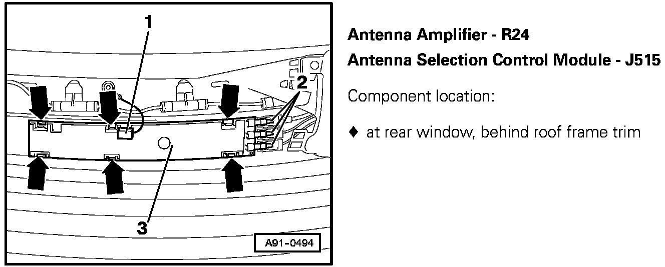 Antenna Amplifier - R24, Antenna Selection Control Module - J515: