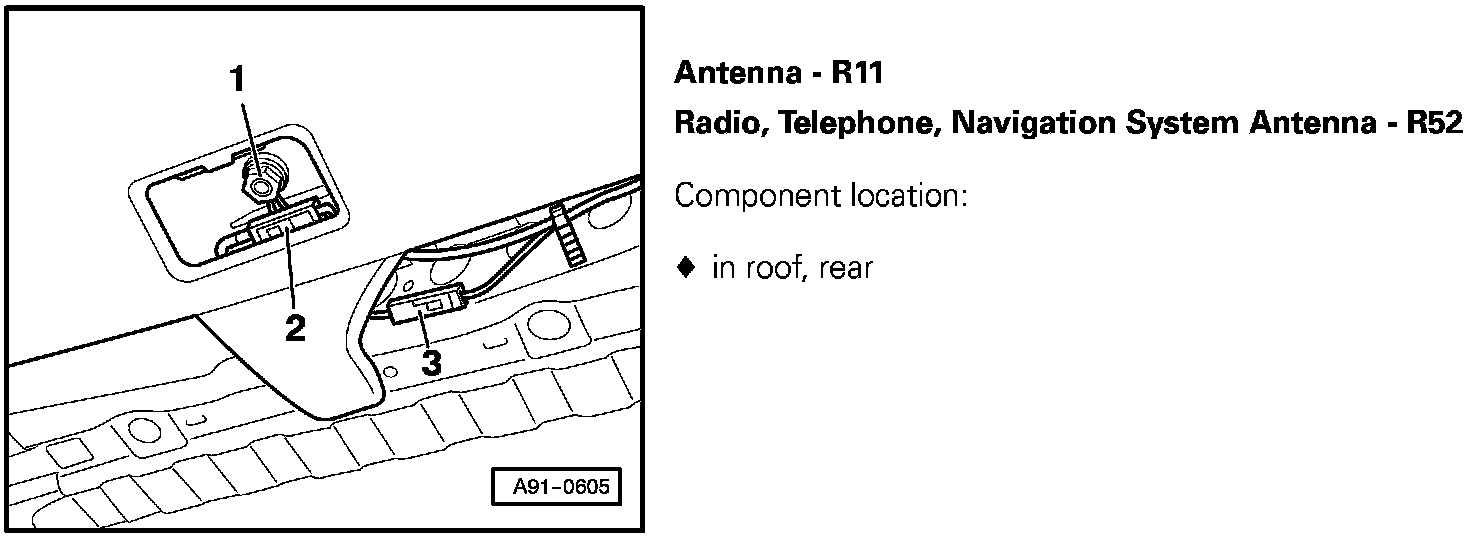 Antenna - R11, Radio, Telephone, Navigation System Antenna - R52: