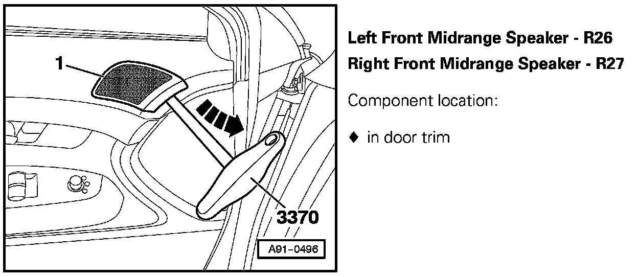 Left Front Midrange Speaker - R26, Right Front Midrange Speaker - R27: