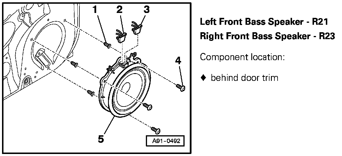 Left Front Bass Speaker - R21, Right Front Bass Speaker - R23: