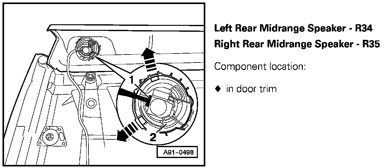 Left Rear Midrange Speaker - R34, Right Rear Midrange Speaker - R35: