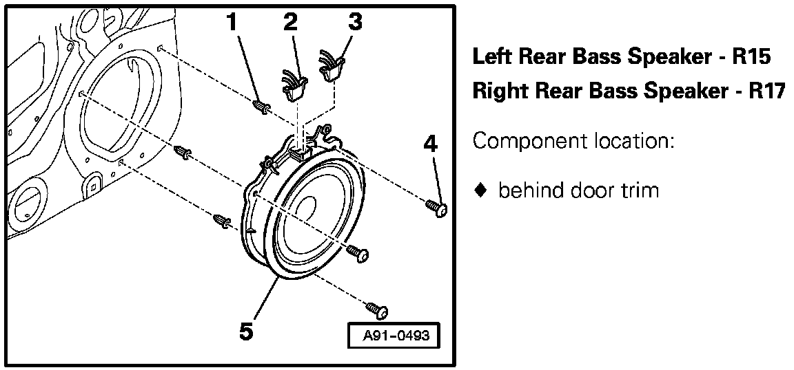 Left Rear Bass Speaker - R15, Right Rear Bass Speaker - R17: