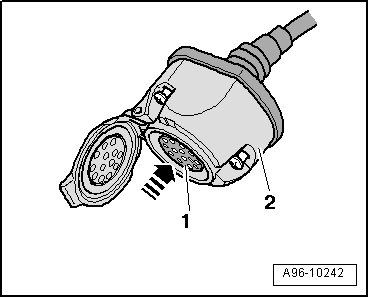 - Press multi-pin connector - 2 - in - direction of arrow - out of socket - 1 -.