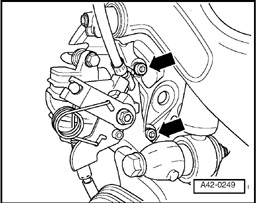 - Loosen collared bolt - arrow - only 90° with vehicle standing on its wheels, if you wish to remove components which require removal of collared bolt.