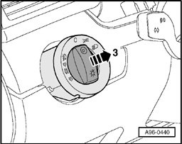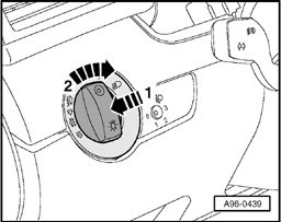- Press light switch - arrow 1 - and turn toward right simultaneously - arrow 2 -.